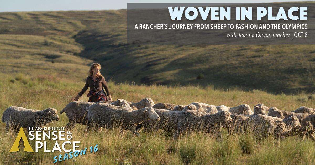 Mt. Adams Institute’s Sense of Place event series kicks off its 16th season on Wednesday, October 8 with Woven in Place: A Rancher’s Journey from Sheep to Fashion and the Olympics at Columbia Center for the Arts.
